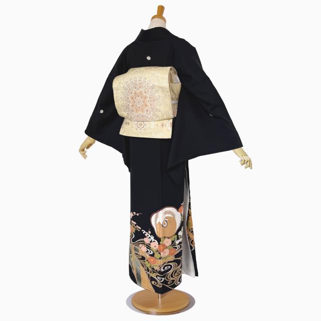 【レンタル】黒留袖 フルセット 五三桐 正絹 礼装 結婚式 母親 親族用 着物 3泊4日 往復送料無料 簡単返却 【Mサイズ No.0039】