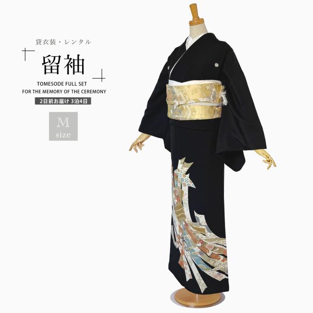 【レンタル】黒留袖 フルセット 五三桐 正絹 礼装 結婚式 母親 親族用 着物 3泊4日 往復送料無料 簡単返却 【Mサイズ No.0025】
