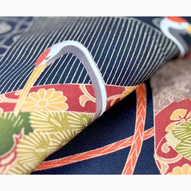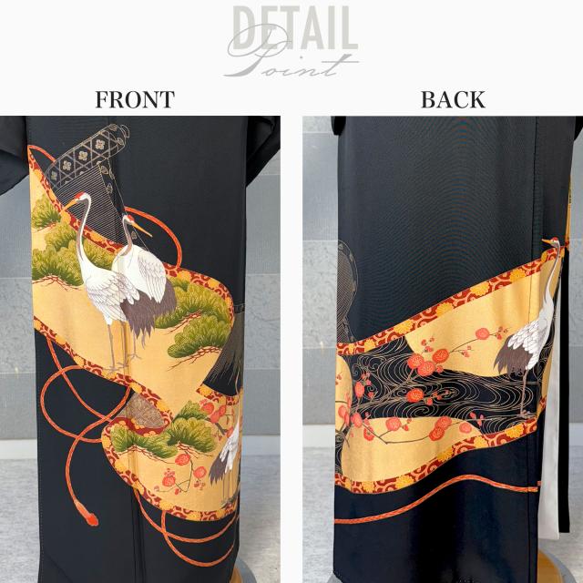 Mサイズ:150cm〜160cmくらいの方 ・身丈:166cm ・裄丈:66.5cm ・袖丈:49cm ・前幅:25cm ・後幅:30.5cm ※一点ずつ仕立ての為、多少寸法が異なります。 ※洋服サイズ13号まで対応 家紋:五三桐 ●素材=絹100%