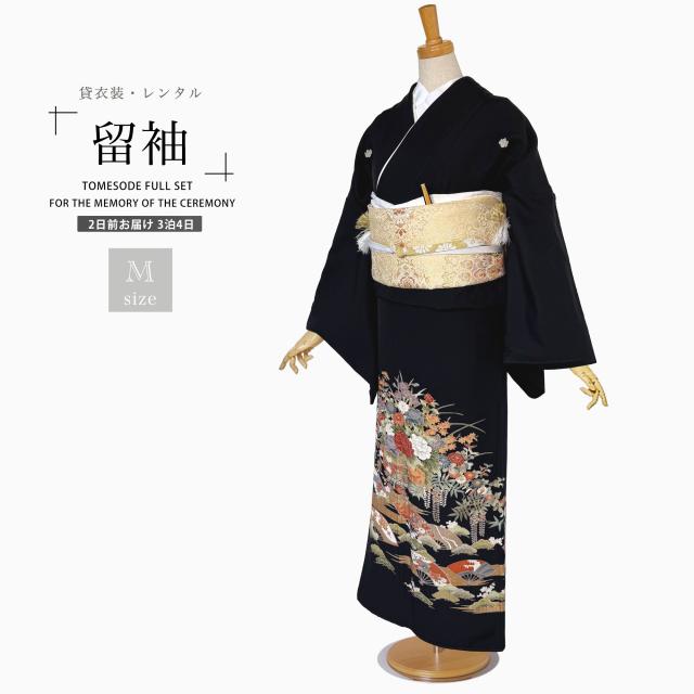 【レンタル】黒留袖 フルセット 五三桐 正絹 礼装 結婚式 母親 親族用 着物 3泊4日 往復送料無料 簡単返却 【Mサイズ No.0027】