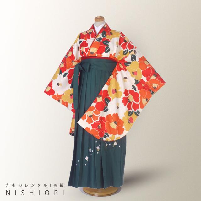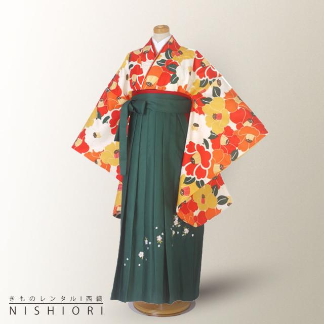卒業式 二尺袖 ジュニア 着物 レンタル 袴 往復十三参り 貸衣装 小学生 白 椿 緑 刺繍 無地 ブーツ選択可