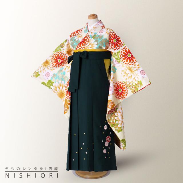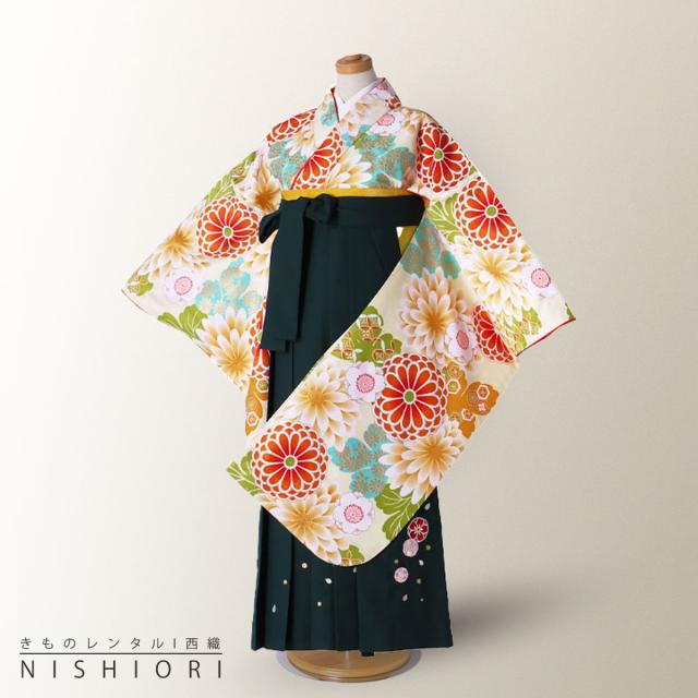 卒業式 二尺袖 ジュニア 着物 レンタル 小町kids 袴 往復十三参り 貸衣装 小学生 菊 クリーム ブーツ選択可