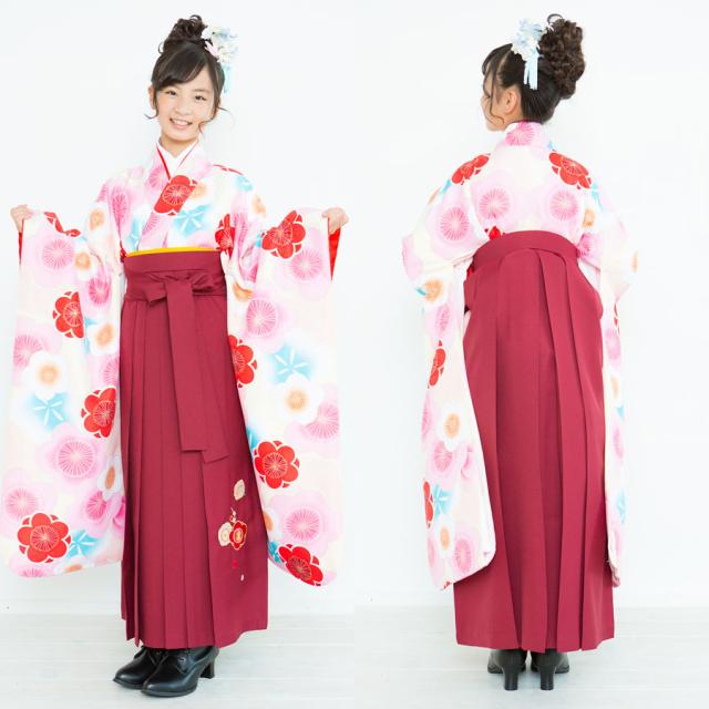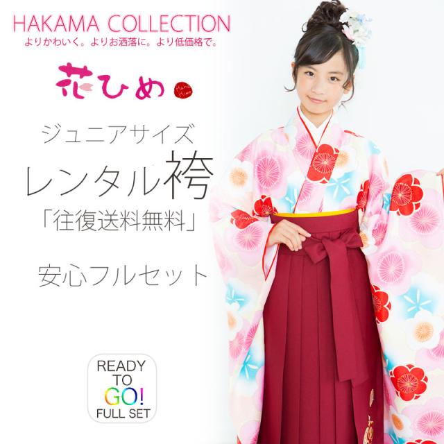 ジュニア 二尺袖 着物 袴 レンタル 花ひめブランド 往復十三参り 卒業式 貸衣装 小学生 クリーム 赤 桜 ブーツ選択可