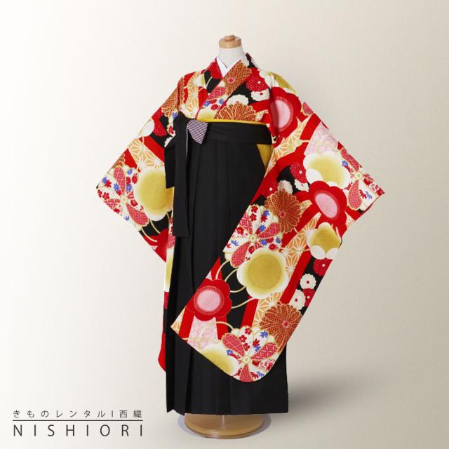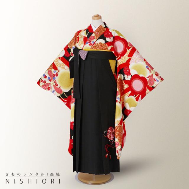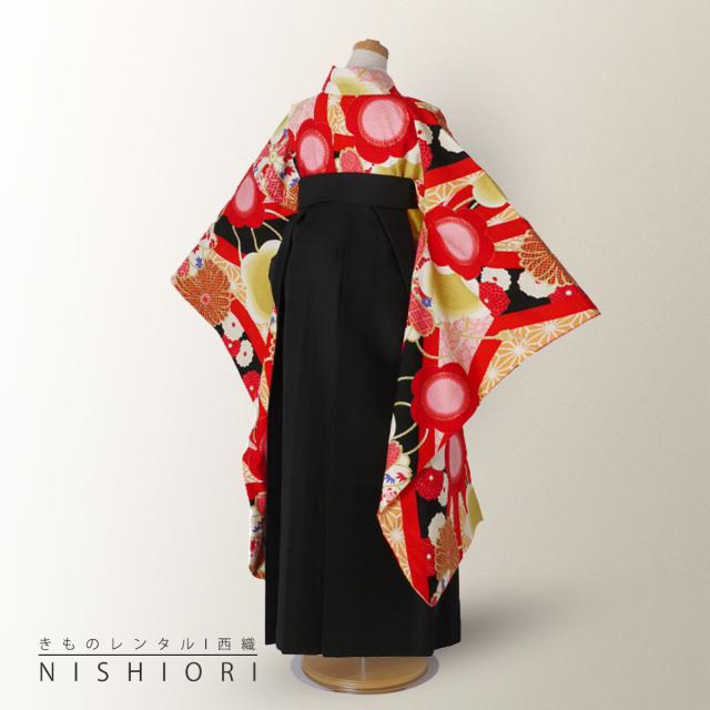 ジュニア 二尺袖 着物 袴 レンタル 九重 ブランド 往復十三参り 卒業式 貸衣装 小学生 古典柄 赤 黒 ブーツ選択可