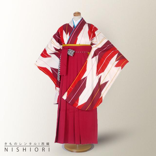 卒業式 二尺袖 ジュニア 着物 レンタル 袴 往復十三参り 貸衣装 小学生 ワイン 矢羽 矢絣 刺繍 無地 ブーツ選択可
