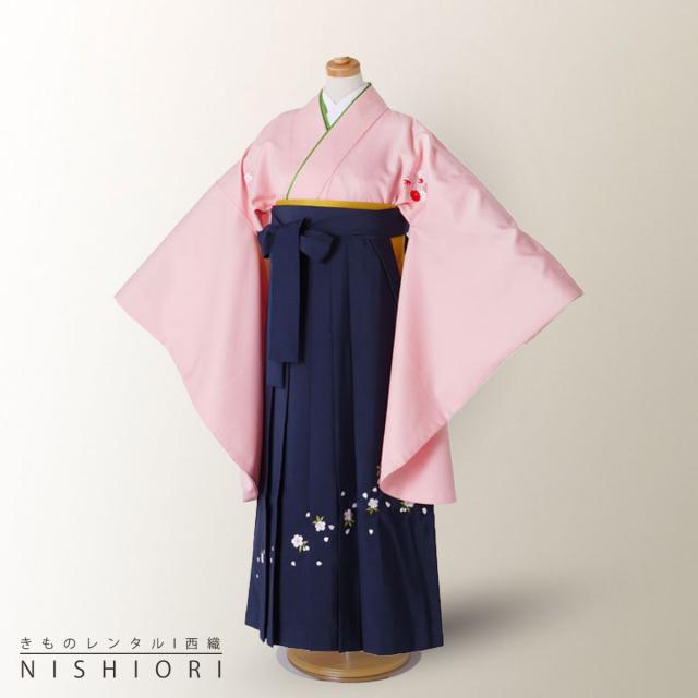 ジュニア キッズ 着物 袴 レンタル 往復十三参り 貸衣装 卒業式 小学生 ピンク 紺 刺繍 ブーツ選択可