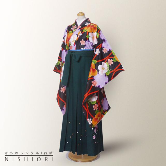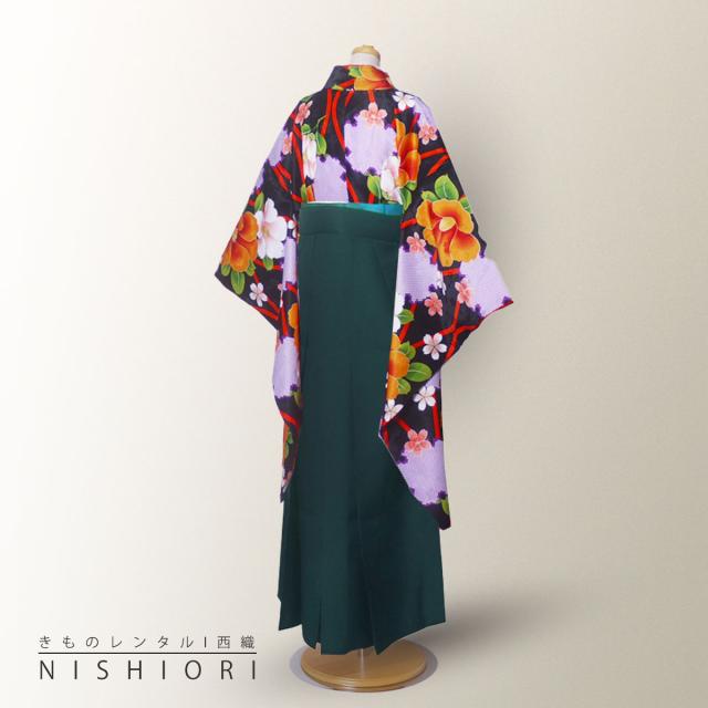 小町kids ジュニア キッズ 着物 袴 レンタル 往復十三参り 貸衣装 卒業式 小学生 緑 黒 KKj-9 ブーツ選択可