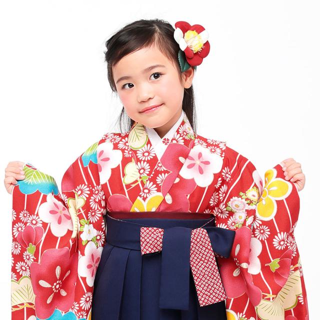 卒園用 小町kids 女児 着物 袴 レンタル 110cm 120cm 貸衣装 往復送料無料 卒園式 七五三 赤 ストライプ 梅
