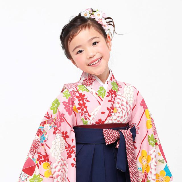 卒園用 小町kids 女児 着物 袴 レンタル 110cm 120cm 貸衣装 往復送料無料 卒園式 七五三 ピンク ストライプ 菊