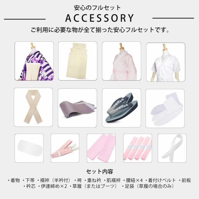 二尺袖 着物 袴 レンタル 貸衣装 夢千代 袴 Mサイズ 紫 パープル 赤 小学生 対応 ブーツ選択可