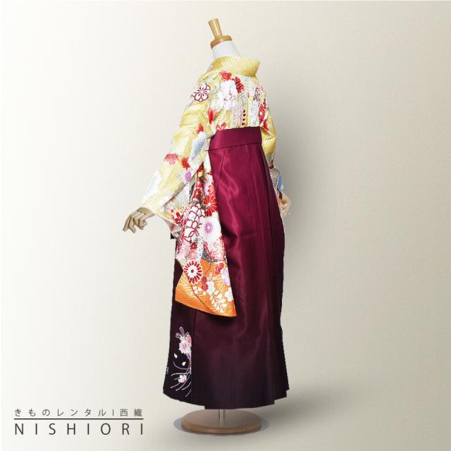 二尺袖 着物 袴 レンタル 貸衣装 From Kyoto クリーム オレンジ ワイン 刺繍 袴 S M サイズ 小学生 対応 ブーツ選択可