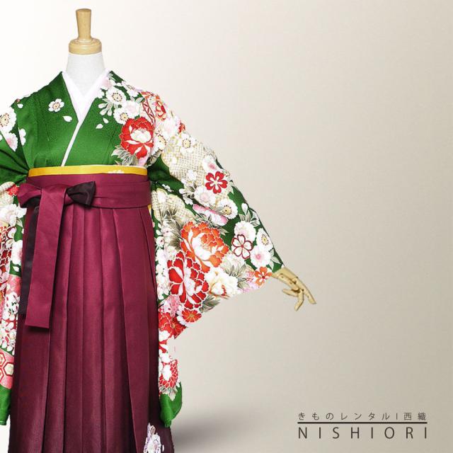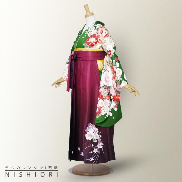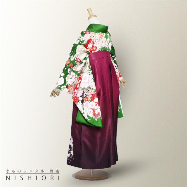 二尺袖 着物 袴 レンタル 貸衣装 From Kyoto 緑 ワイン 刺繍 袴 S M サイズ 小学生 対応 ブーツ選択可