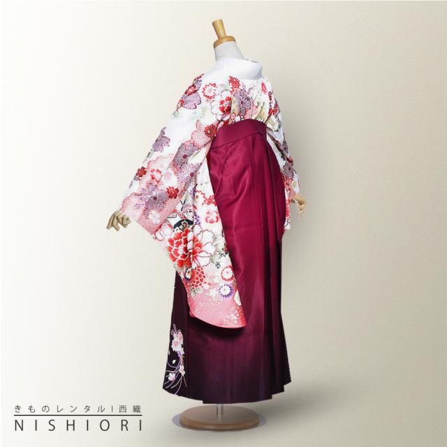 二尺袖 着物 袴 レンタル 貸衣装 From Kyoto 白 ワイン 刺繍 袴 S M サイズ 小学生 対応 ブーツ選択可