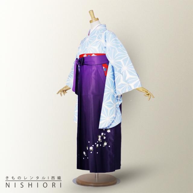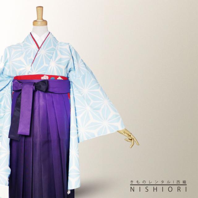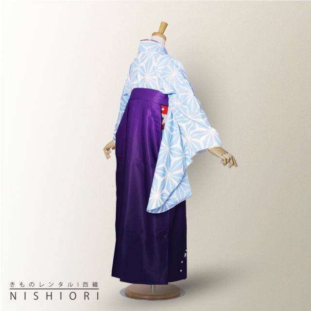 二尺袖 着物 袴 レンタル 貸衣装 麻の葉 水 青 紫 袴 S Mサイズ 小学生 対応 ブーツ選択可