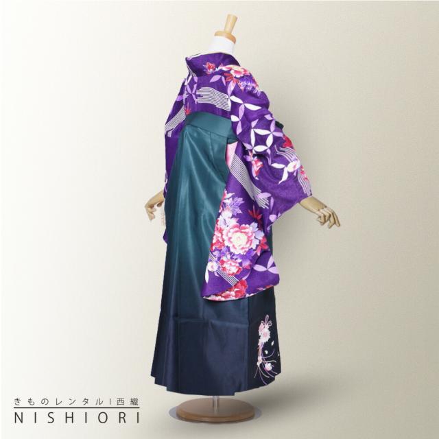 二尺袖 着物 袴 レンタル 貸衣装 袴 S Mサイズ 小学生 対応 紫 赤 牡丹 七宝 緑 ブーツ選択可
