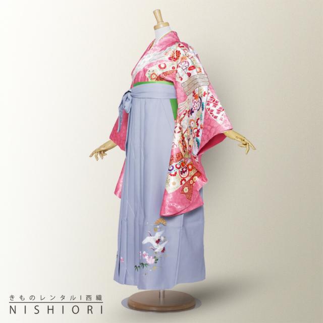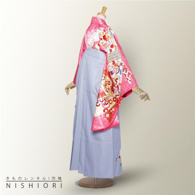 ブランド 二尺袖 着物 袴 レンタル anan 貸衣装 Mサイズ 小学生 対応可 ピンク グレー 刺繍 ブーツ選択可