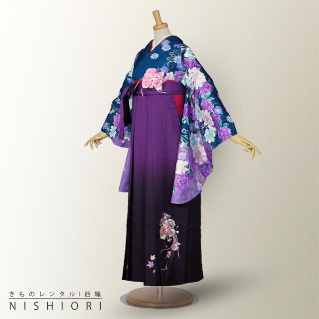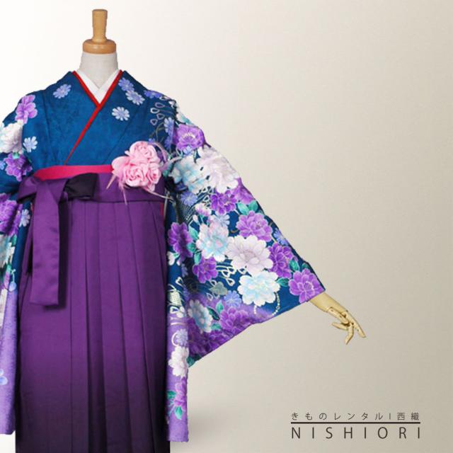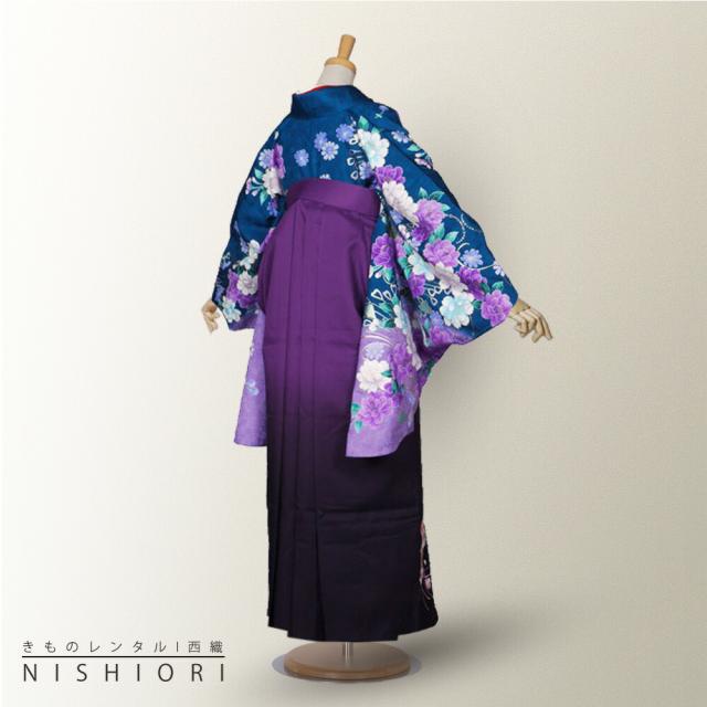 二尺袖 着物 袴 レンタル 貸衣装 LLサイズ 青 ブルー 紫 パープル 刺繍 ブーツ選択可