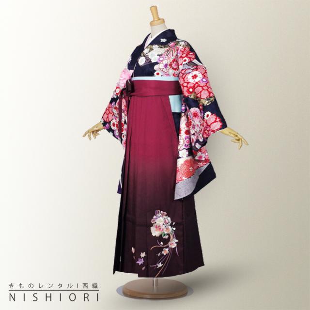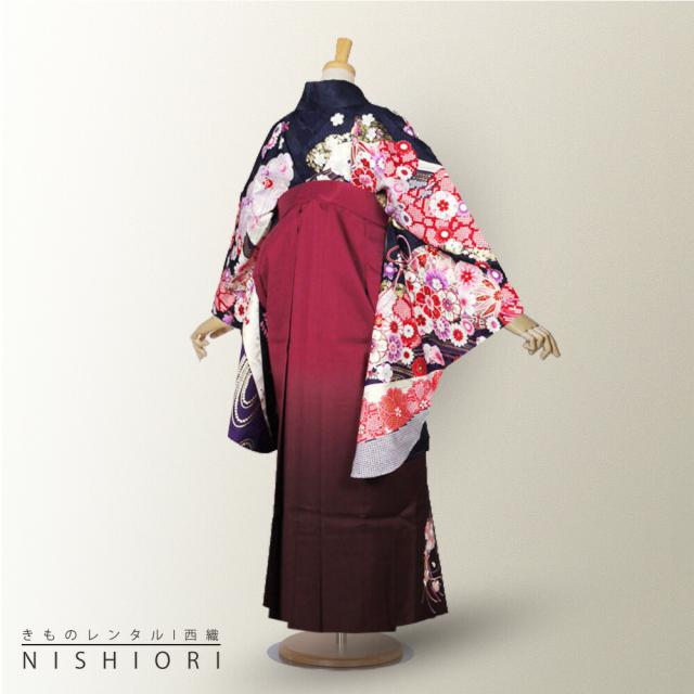 二尺袖 着物 袴 レンタル 貸衣装 LLサイズ 濃紺 ワイン 刺繍 ブーツ選択可