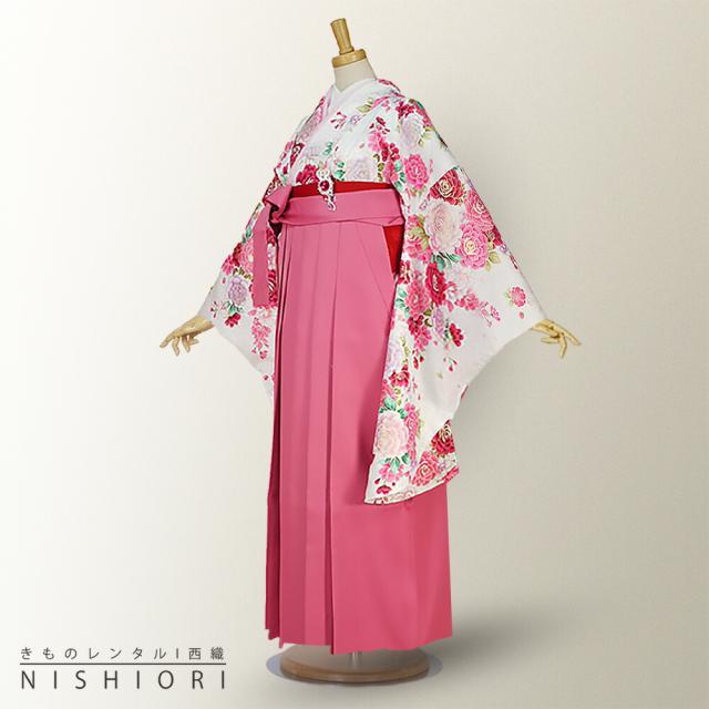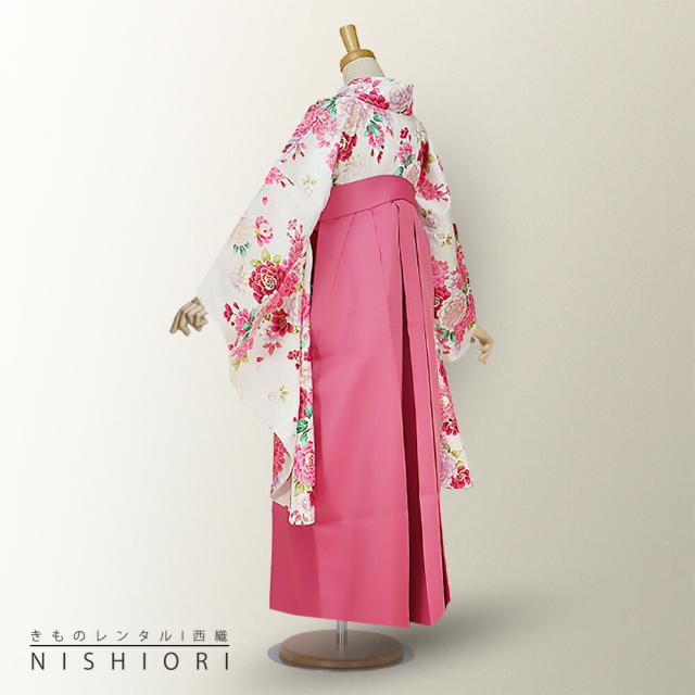 二尺袖着物 袴 レンタル 貸衣装 白×ピンク×刺繍 袴 Mサイズ 小学生 対応 ブーツ選択可