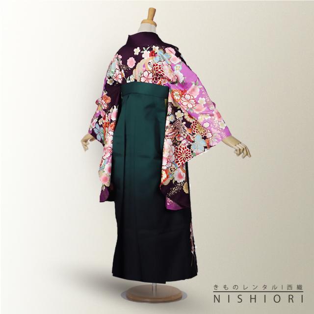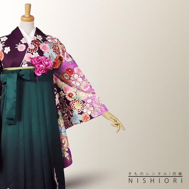 二尺袖 着物 袴 レンタル 貸衣装 From Kyoto ブランド Mサイズ 紫 パープル 緑 刺繍 小学生 対応 ブーツ選択可 卒業式 式典 女の子 女性用 袴 フルセット
