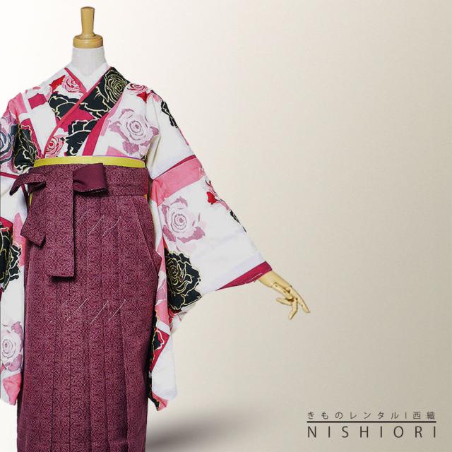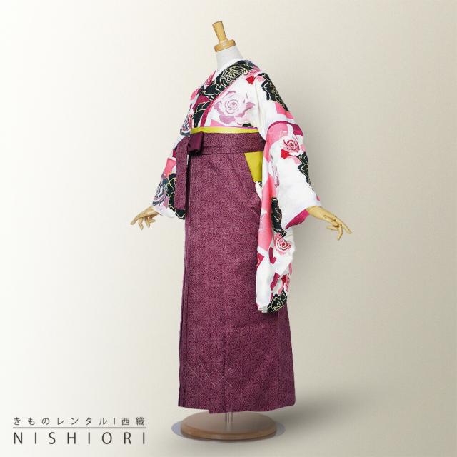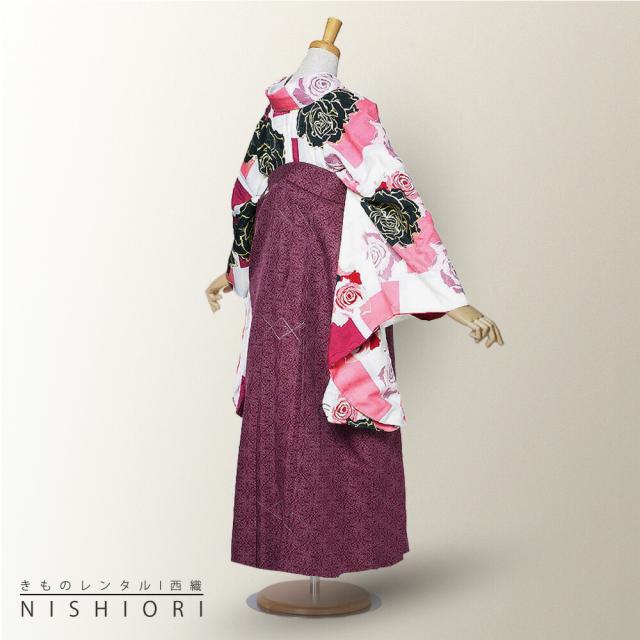 二尺袖 着物 袴 レンタル 貸衣装 CECIL McBEE 青 白 紺 ワイン バラ ストライプ 刺繍 袴 Mサイズ 小学生 対応 ブーツ選択可