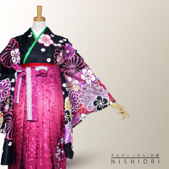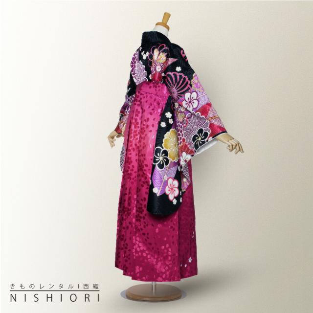 二尺袖 着物 袴 レンタル From KYOTO 貸衣装 SサイズMサイズ 小学生 対応可 黒 菊 ワイン ブーツ選択可