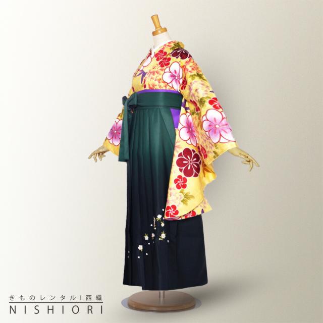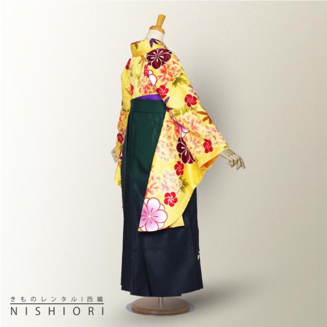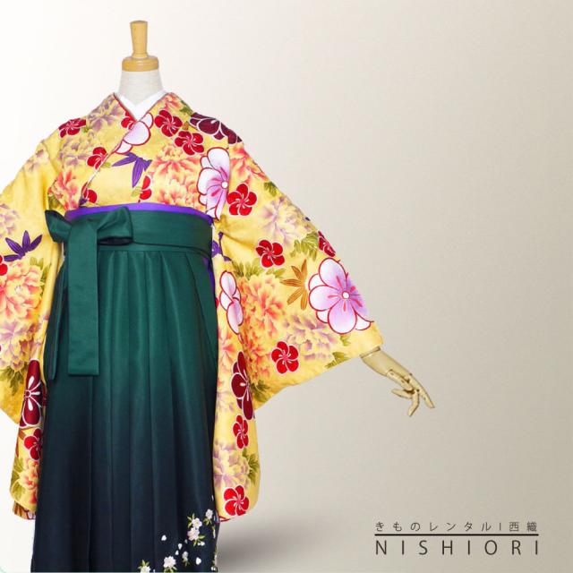 二尺袖 着物 袴 レンタル 貸衣装 Sサイズ Mサイズ Lサイズ 小学生 対応可 黄色 牡丹 緑 ブーツ選択可