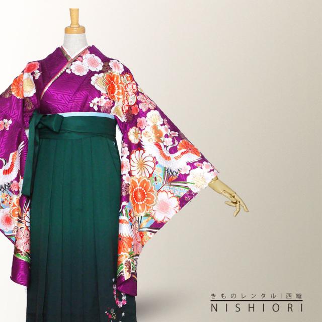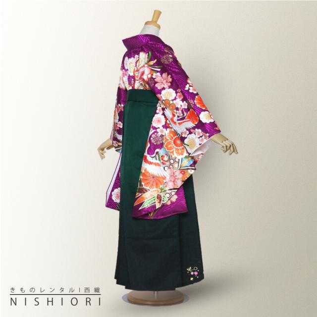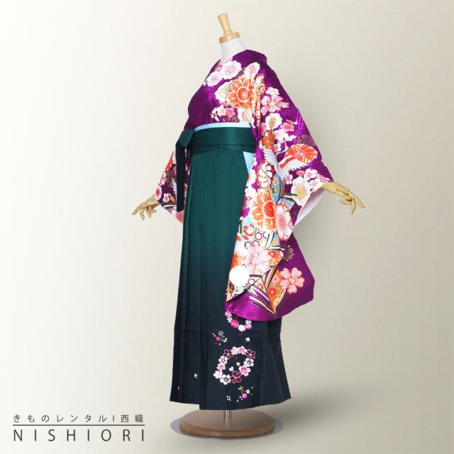 絵羽柄 二尺袖 ブランド 着物 袴 レンタル From KYOTO 貸衣装 Mサイズ 小学生 対応可 金彩 紫 鶴 緑 ブーツ選択可