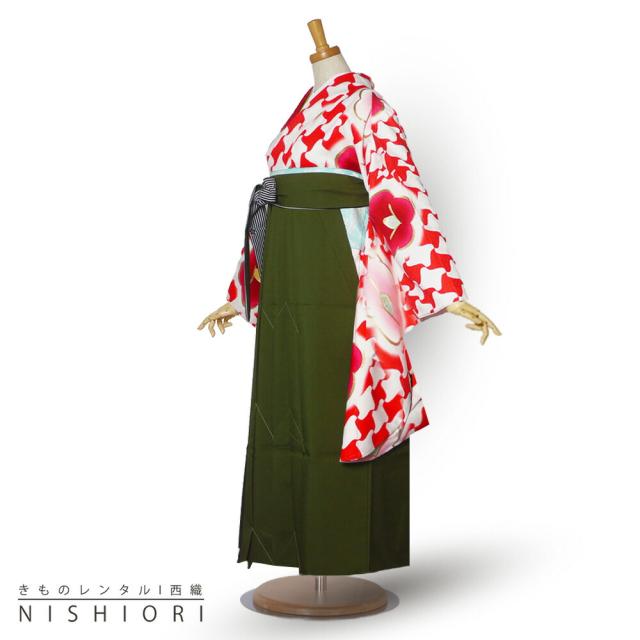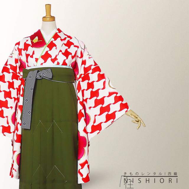 二尺袖 着物 袴 レンタル 貸衣装 SサイズMサイズ 小学生 対応可 赤白 千鳥 椿 ブーツ選択可