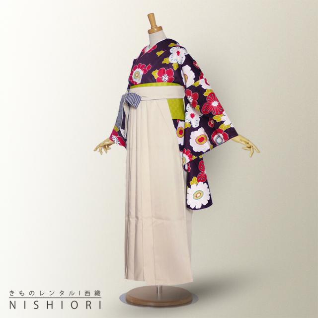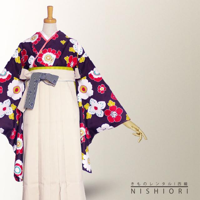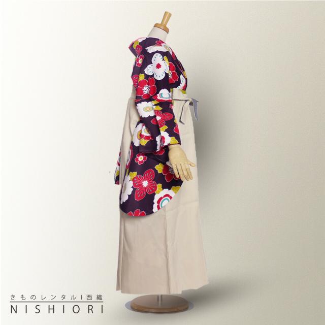 二尺袖 着物 袴 レンタル 紅一点 ブランド 貸衣装 Sサイズ Mサイズ 小学生 対応可 暗紫 フラワー オフホワイト ブーツ選択可