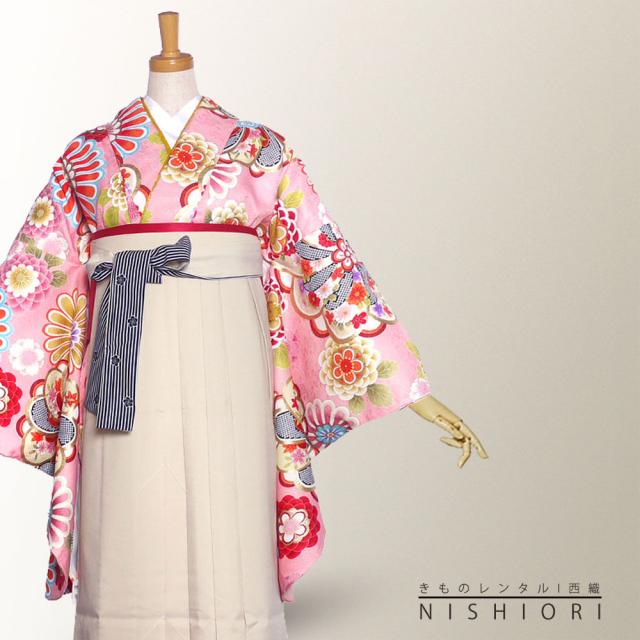 二尺袖 着物 袴 ハイクラス レンタル 貸衣装 Sサイズ Mサイズ 小学生 対応可 ピンク 桃色 オフホワイト アイボリー 金彩 ブーツ選択可