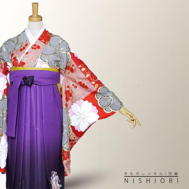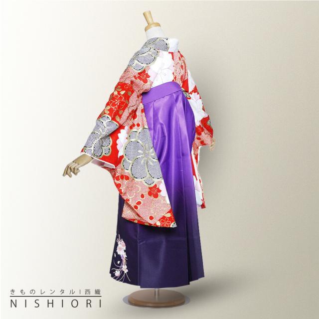 二尺袖 着物 袴 レンタル 貸衣装 From Kyoto 赤 オレンジ 鹿の子 紫 刺繍 袴 S M サイズ 小学生 対応 ブーツ選択可