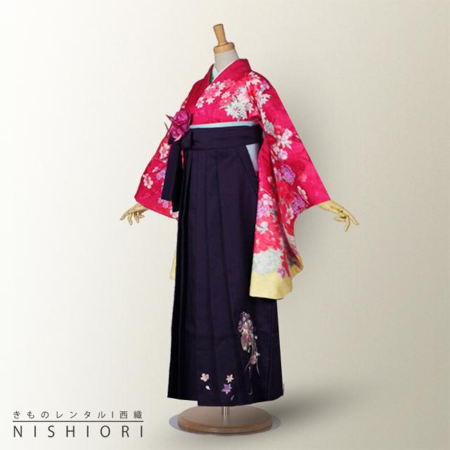 二尺袖 着物 袴 レンタル 貸衣装 LLサイズ ピンク 紫 パープル 刺繍 ブーツ選択可