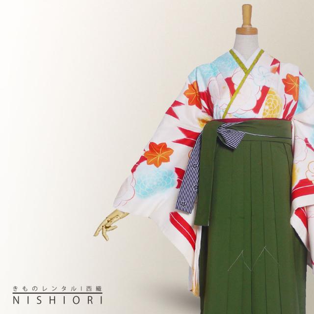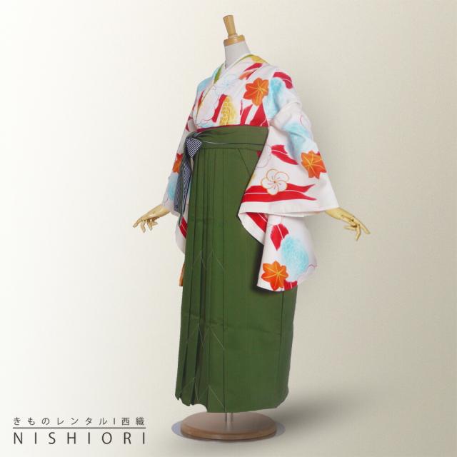 二尺袖 着物 袴 レンタル 貸衣装 Mサイズ 白 矢羽 矢絣 紅葉 緑 無地 ブーツ選択可