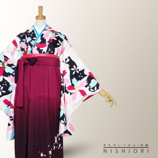 二尺袖 着物 袴 レンタル 貸衣装 Sサイズ Mサイズ Lサイズ 小学生 対応可 赤 白 桜 黒猫 ネコ ブーツ選択可