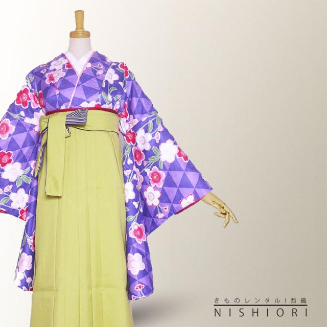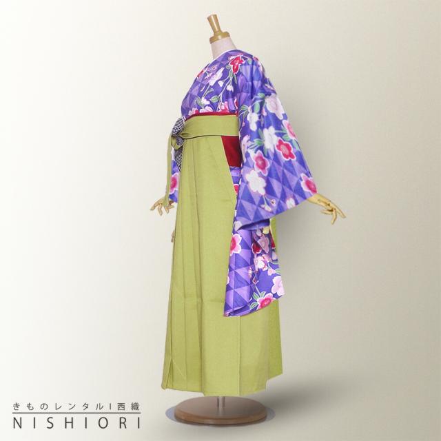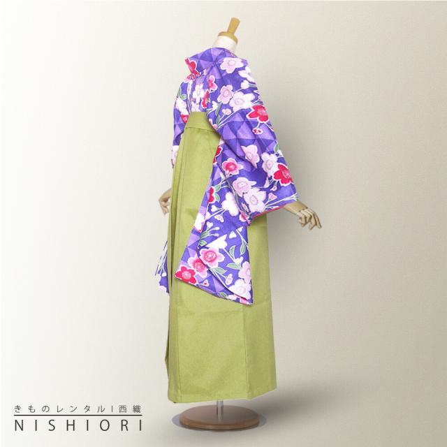 二尺袖 着物 袴 レンタル HL 貸衣装 小学生 ジュニアサイズ Sサイズ Mサイズ 紫 青 桜 ブーツ選択可