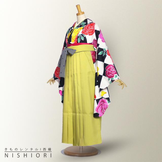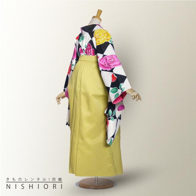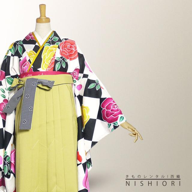 二尺袖 袴 レンタル ひさかたろまん ブランド 着物 貸衣装 SサイズMサイズ 小学生 対応可 ダイヤ 白黒 薔薇 黄緑 ブーツ選択可