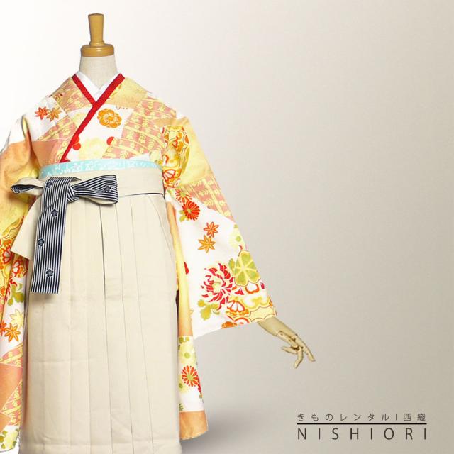 二尺袖 袴 レンタル ひさかたろまん ブランド 着物 貸衣装 SサイズMサイズ 小学生 対応可 クリーム 紅葉 黄色 オフホワイト ブーツ選択可
