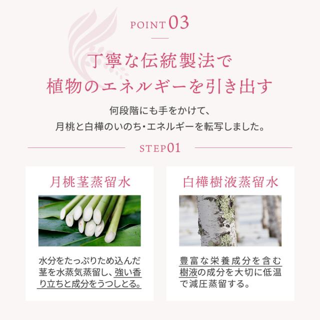 【成分】ゲットウ葉/茎水、シラカバ樹液、ゲットウ葉エキス、ゲットウ根/種子/茎エキス