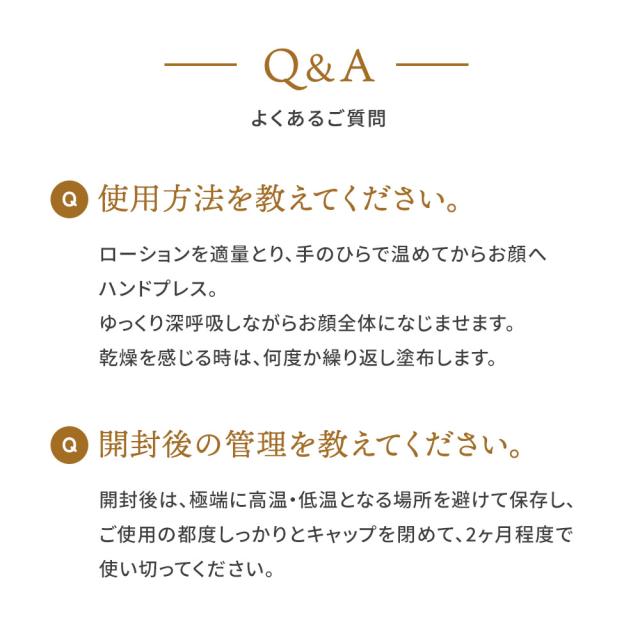 ローションを適量とり、手のひらで温めてからお顔へハンドプレス。