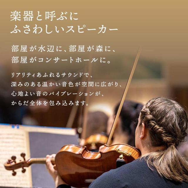 リアリティあふれるサウンドで、深みのある温かい音色が空間に広がり、心地よい音のバイブレーションが、からだ全体を包み込みます。