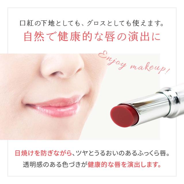 日焼けを防ぎながら、ツヤとうるおいのあるふっくら唇。透明感のある色づきが健康的な唇を演出します。