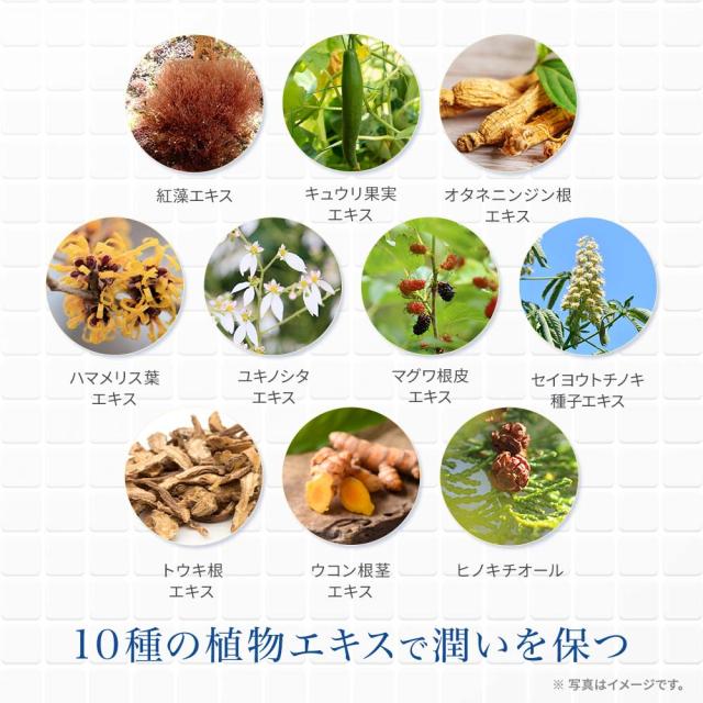 8種の植物エキスと10種の植物エキスで構成。
