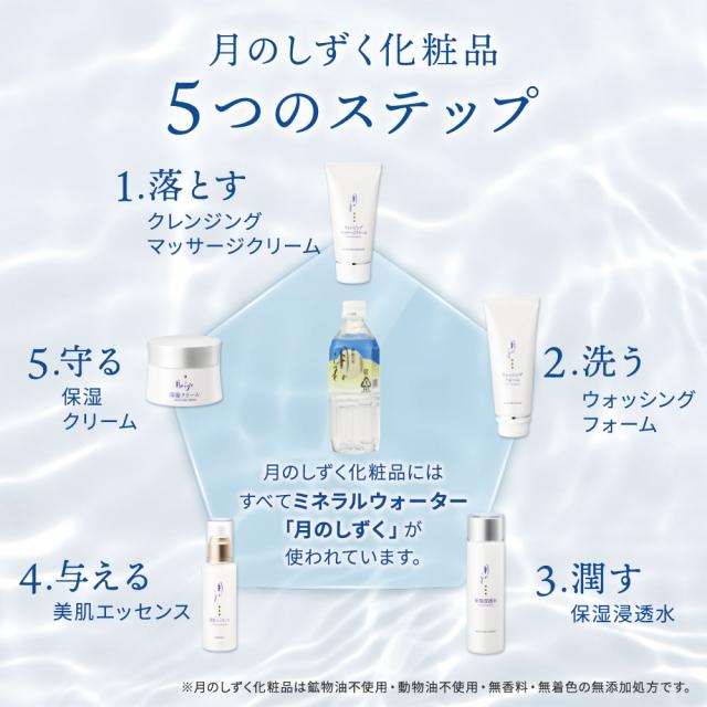 月のしずく化粧品は、ミネラルウォーター「月のしずく」が使われている化粧品です。