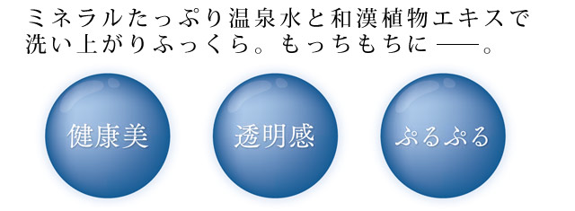 『泉花』は、ミネラルバランスの良い天然水『月のしずく』に、13種類の和漢植物エキスが溶け込んだピュアな温泉石けん。