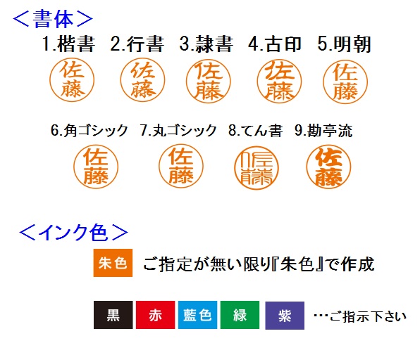 書体を選んでご注文いただくと2週間以内に発送(印鑑部のお名前をご注文時のメッセージ欄にご記入下さい)。