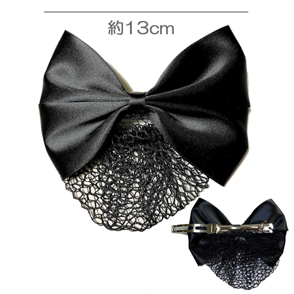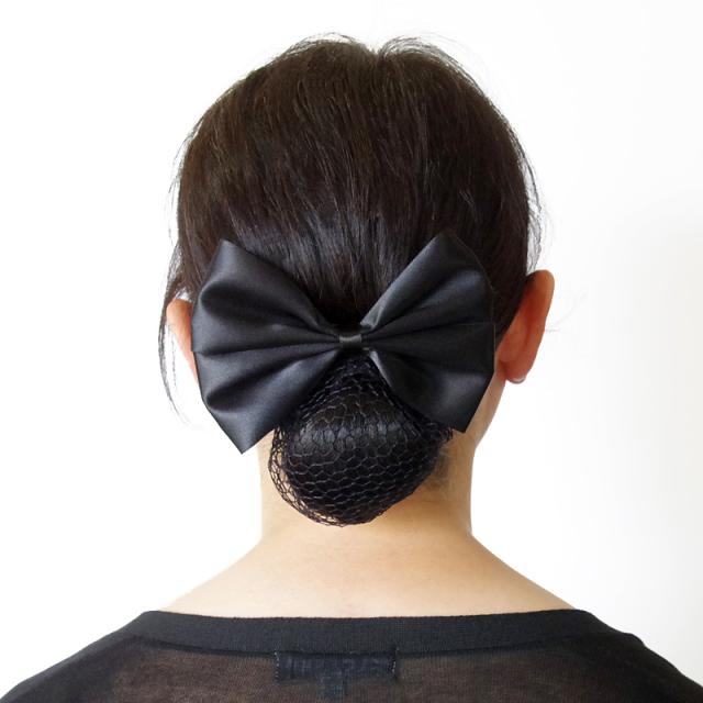 【日本製】シニヨンネット付き リボンバレッタ サテン 黒 まとめ髪 hrc6121 リボン バレッタ ヘアアクセサリー シニヨンカバー シニヨンネット お団子ネット フォーマル オフィス お受験 就職活動 就活 面接 面談 入学式 入園式 まとめ髪 ヘアスタイル 髪型