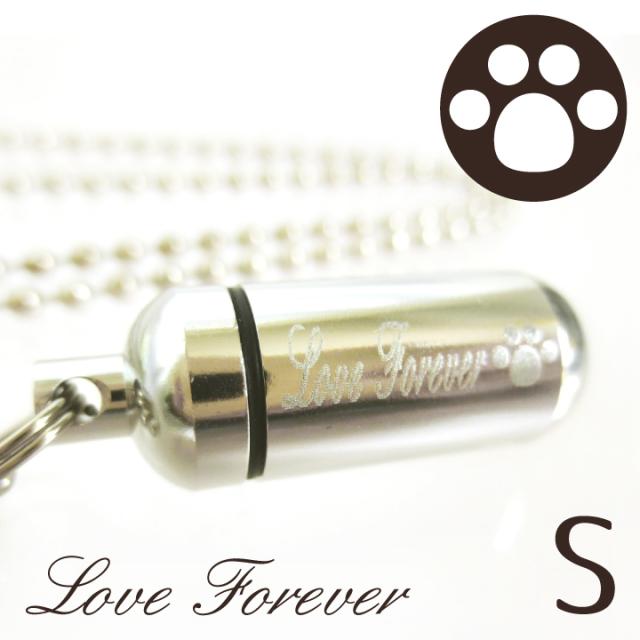 ご遺骨などを納めることのできる、肉球のマークとlove foreverの文字が入った遺骨カプセル、遺骨ペンダントです。