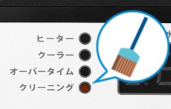 稼働時間が200時間に達すると「クリーニングランプ」が点灯。忘れがちなお掃除をランプでお知らせします。