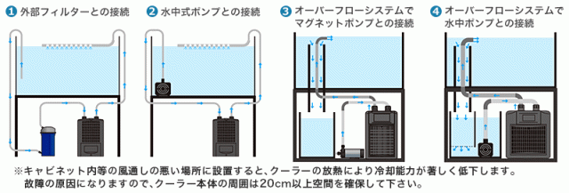 ・この商品は、クーラー単体での販売となります。ポンプ、ヒーター、配管などの周辺部材は別売りです。